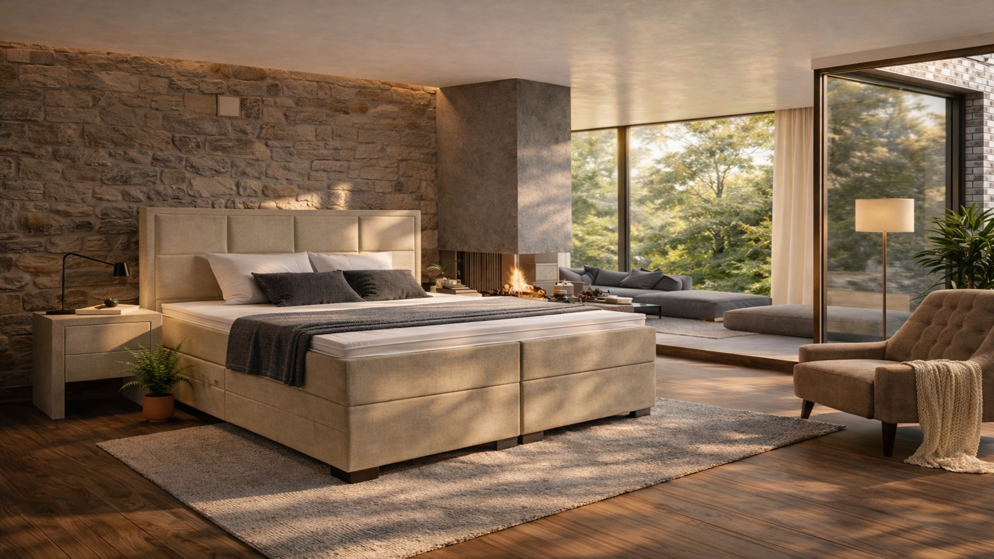 Matrassen: Mee gestoffeerde pocketvering matrassen met aan beide zijden een 4,5 cm HY40 comfortlaag. Totale dikte: ca. 21 cm.